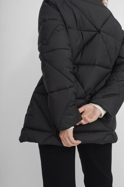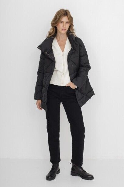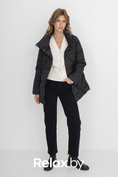 Удлинённая куртка без капюшона коллекции Savage Autumn 2023. Наполнитель: полиэстер. Прямой крой. Длина — до середины ягодиц. Высокий воротник- стойка. Имеются прорезные боковые карманы. Застёжка на кнопки. Втачной рукав. Фигурная стёжка.