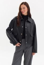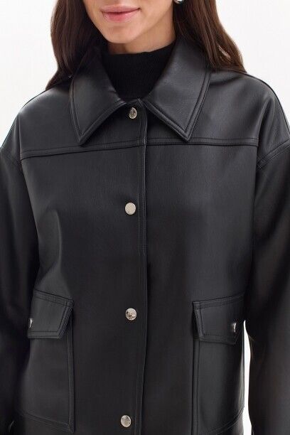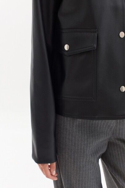 Укороченная куртка-бомпер Savage, пре-коллекция New classic 2024. Материал верха: полиуретан. Втачной рукав. Отложной воротник. Застёжка на кнопки. Спущенное плечо. Накладные карманы с клапанами на кнопках.
