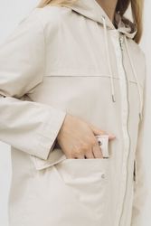 Ветровка коллекции SAVAGE весна-лето 22. Модель выполнена из смесовой хлопковой ткани. Ветровка прямого силуэта, до линии бедер. Застежка на металлическую молнию, несъемный капюшон, карманы накладные с клапанами на кнопках.