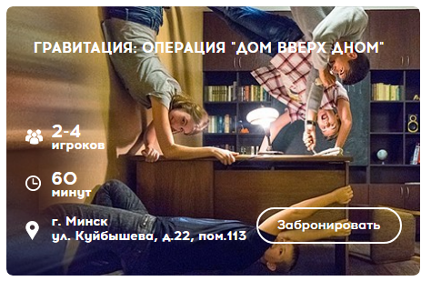 Указанная цена на Квест «Гравитация» Пт 9:30—14:50 Quest Zone может отличаться от фактической. Если в описании или цене вы заметили неточность или ошибку, пожалуйста, сообщите нам на почту help@relax.by.