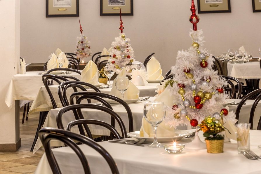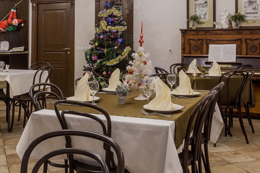 Украшение зала в сезон зимних праздников берет на себя заведение.