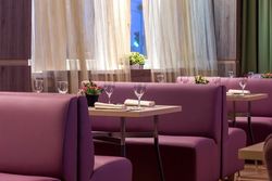 На банкет основной зал вмещает 100 человек, на фуршет — до 200 человек. Стоит обратить внимание, что курение в зале запрещено, однако разрешено курение кальяна.
