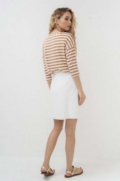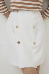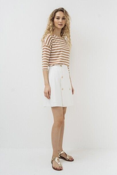 Юбка короткая капсулы Sunrise Time. А-силуэт. Модель выполнена из смесовой ткани с вискозой. Спереди декоративные пуговицы в два ряда. Застежка сзади на потайную молнии.