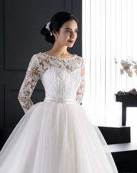 Красивое свадебное платье-трансформер, вверх из красивого кружева шантильи, юбка из благородного атласа, цвет айвори.