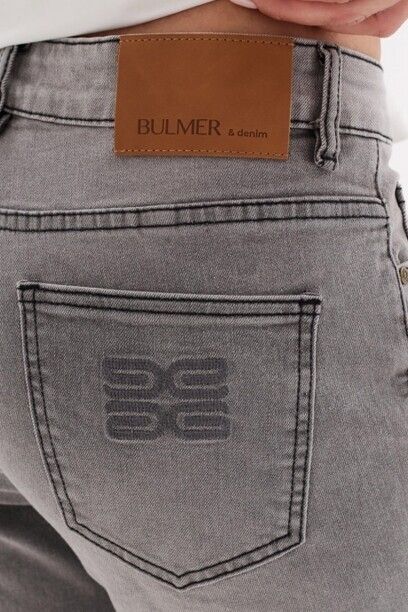 Джинсы с винтажной варкой Bulmer, пре-коллекция Осень 2024. Материал изделия: хлопок, полиэстер, эластан. Трендовый цвет. Прямой силуэт. Минималистичная вышивка-логотип на заднем кармане. Пять карманов. Застежка молния и металлическая пуговица.