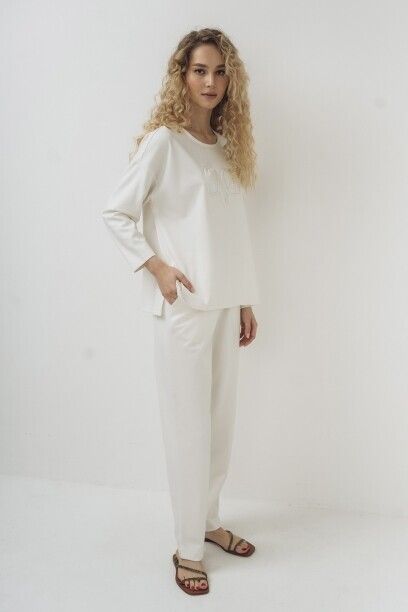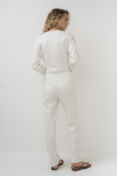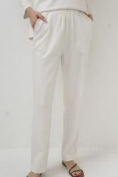 Трикотажные брюки капсулы Sunrise Time. Представлены в двух цветах: белый, какао. Прямой силуэт, карманы в отрезном бочке, талия на резинке.