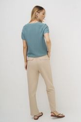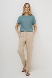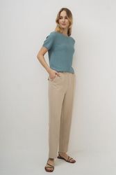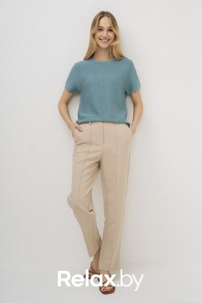 Брюки женские капсулы Sunrise Time. Модель выполнена из однотонной ткани в двух цветах: бежевый и голубой. Классический прямой силуэт зауженный к низу не полной длины. Отрезной пояс со шлевками, застежка-гульфик, боковые карманы с отрезным бочком, задние карманы с клапаном-имитация. Заутюженные «стрелки». Страна производства: Китай. Общество с ограниченной ответственностью «Салама», ИНН 1655349725, 420043, Республика Татарстан, город Казань, улица Чехова, дом № 9, офис 4. Импортер в Республику Беларусь ООО «Фэшн Экспириенс», 220131, г. Минск, 4-ый пер. Кольцова, д. 51, офис 32. брюки женские арт. 23407/2