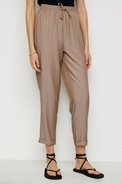 Комфортные джоггеры из вискозы коллекции BASIC 2023. Свободный силуэт. Слегка заужены к низу и дополнены отворотами. Пояс на резинке с кулиской и текстильным шнурком. Брюки с карманами.