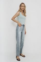 Прямые джинсы из коллекции URBAN NOMAD, выполнены из хлопковой ткани. Популярный фит «Mom». Застежка на молнию и пуговицу. Классические пять карманов.
