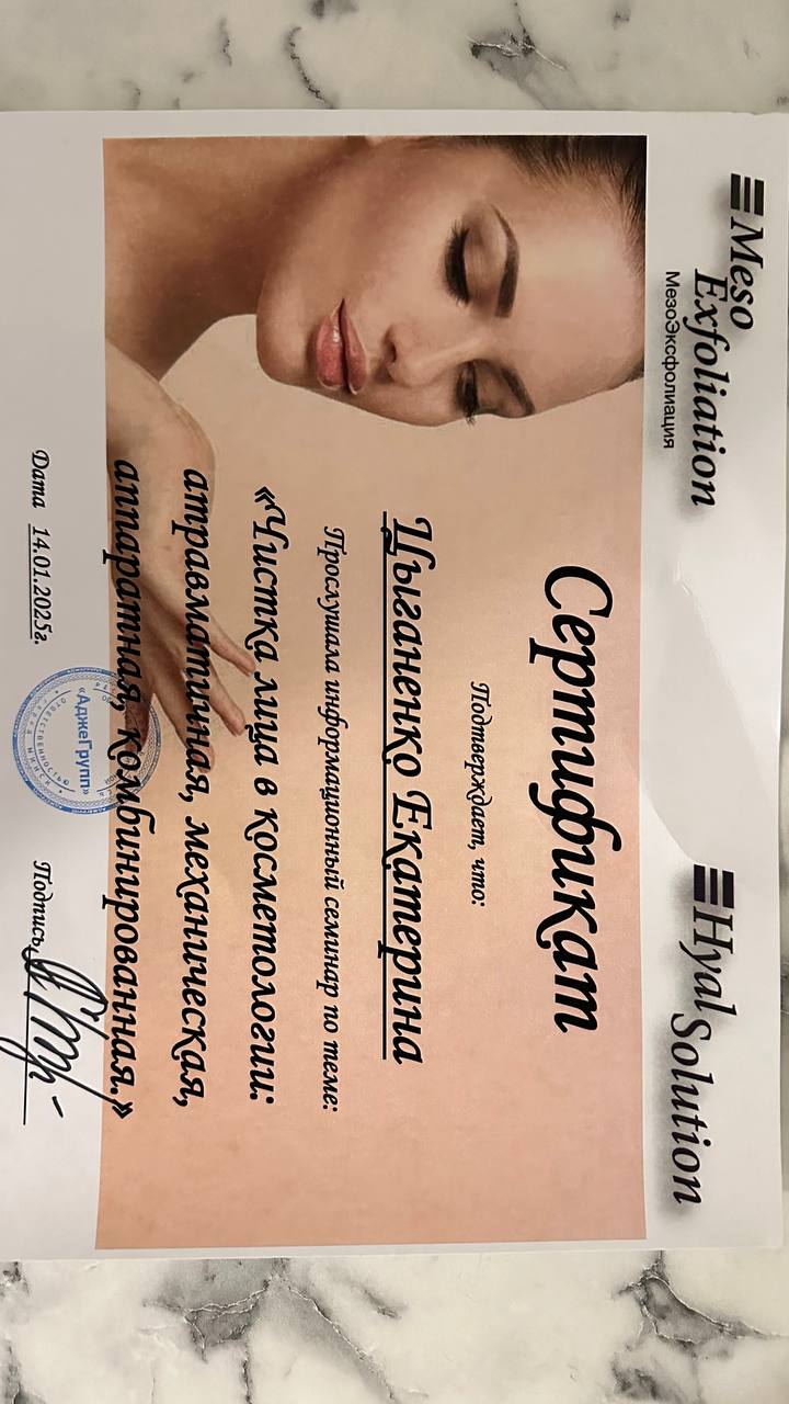 2025 г. — Учебный центр «Адже», семинар «Чистка лица в косметологии: атравматичная, механическая, аппаратная, комбинированная».