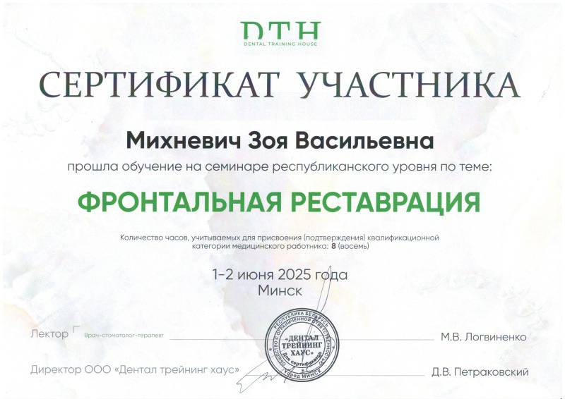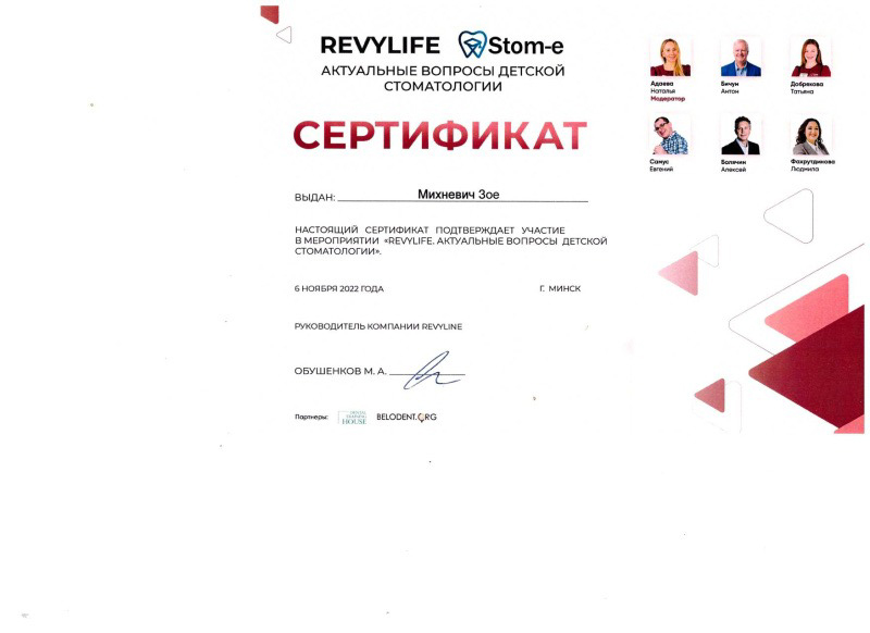 • 2021 г. — «Профилактика, диагностика и лечение стоматологических заболеваний и зубочелюстных аномалий у детей»,