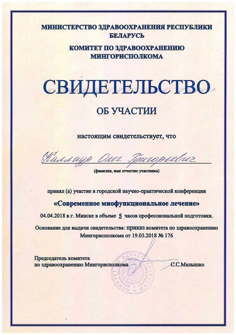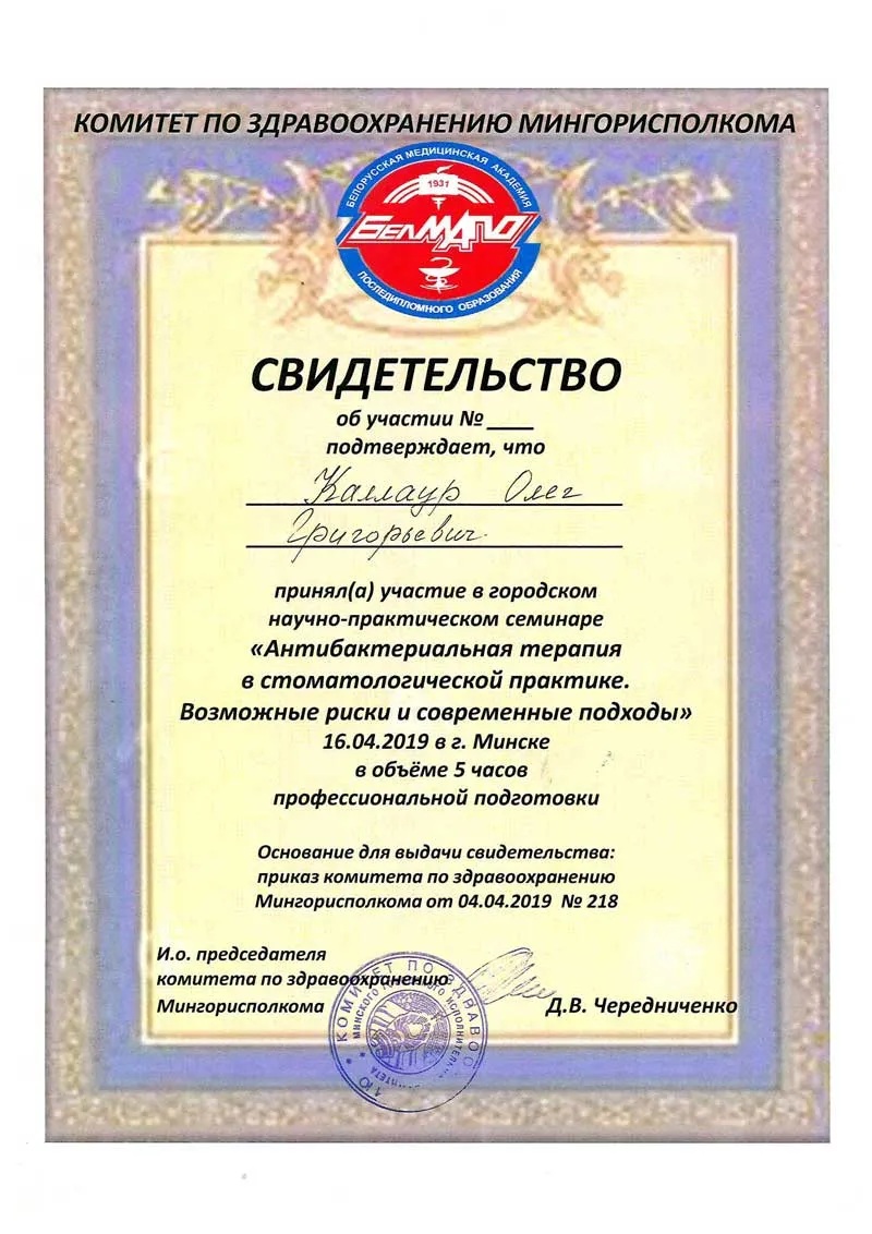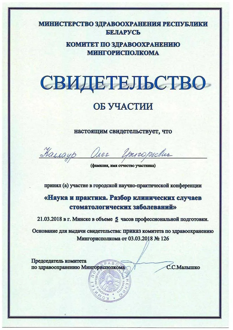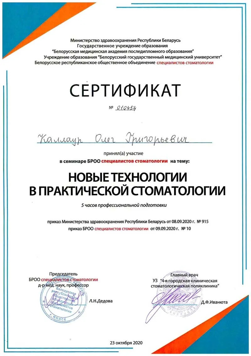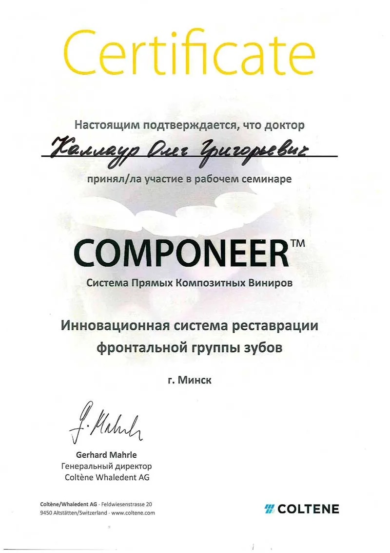 • 2014 г. — рабочий семинар «COMPONEER: система прямых композитных виниров. Инновационная система реставрации фронтальной группы зубов».