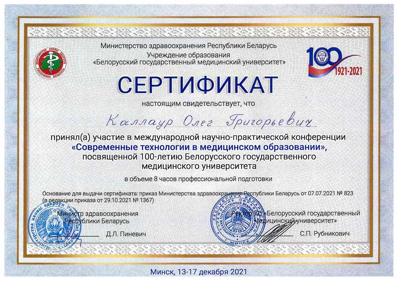 • 2015 г. — семинар «Диагностика и лечение иммунодефецитов у взрослых».