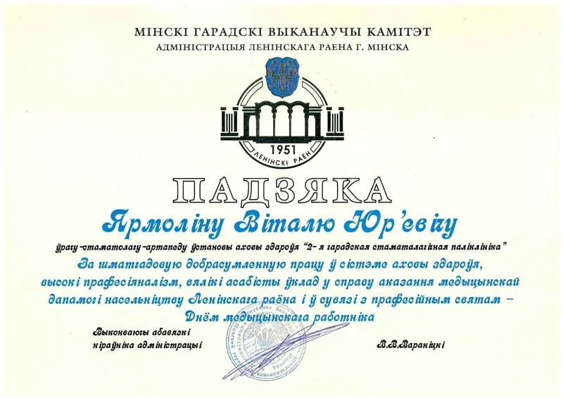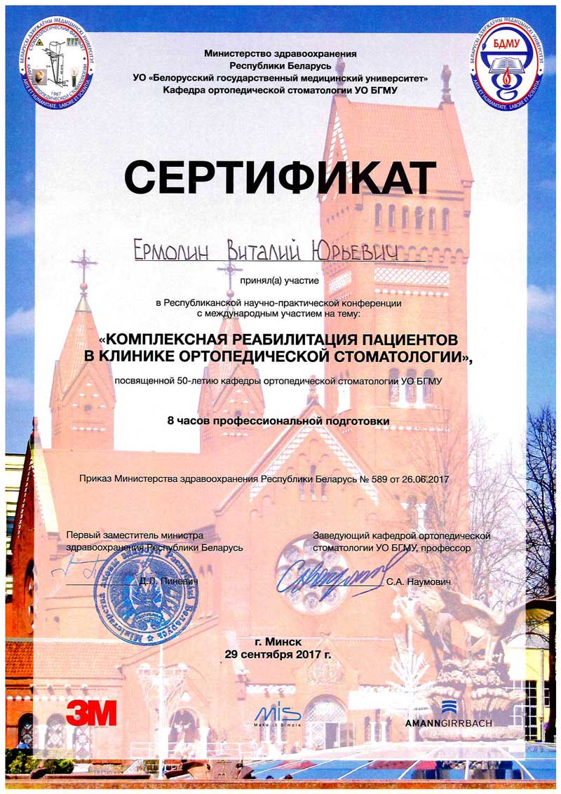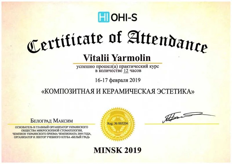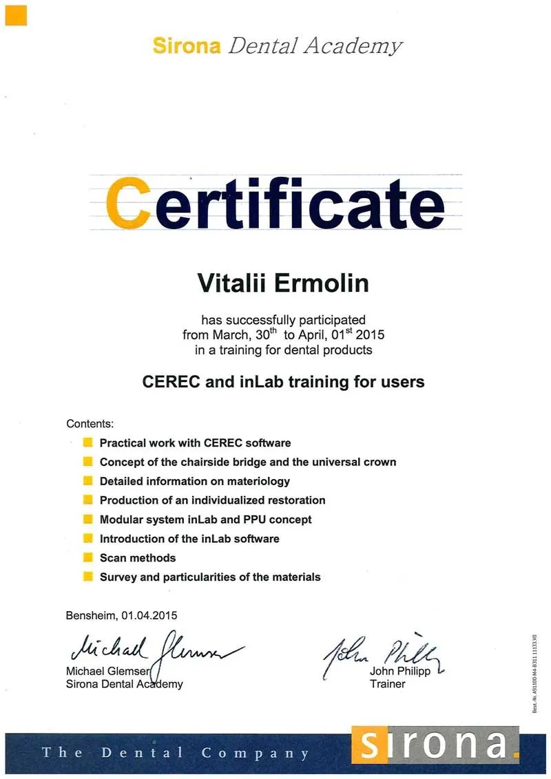 • 2015 г. — участник международного семинара CEREC and inLab training for users.