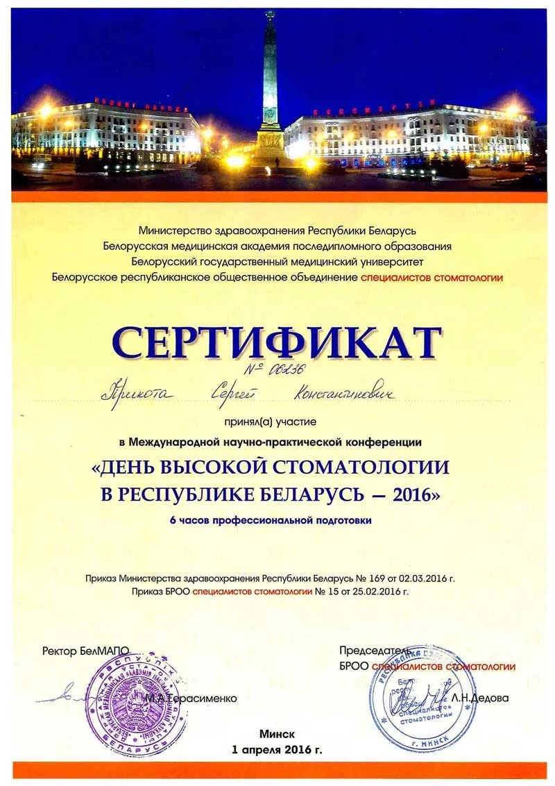 • 2011 г. — семинар «Инфекционный контроль в стоматологии».