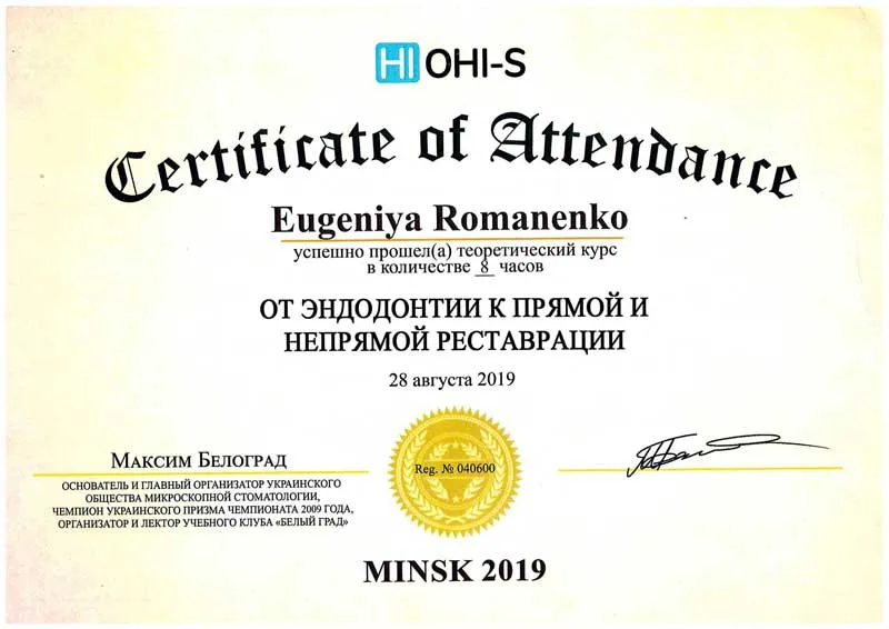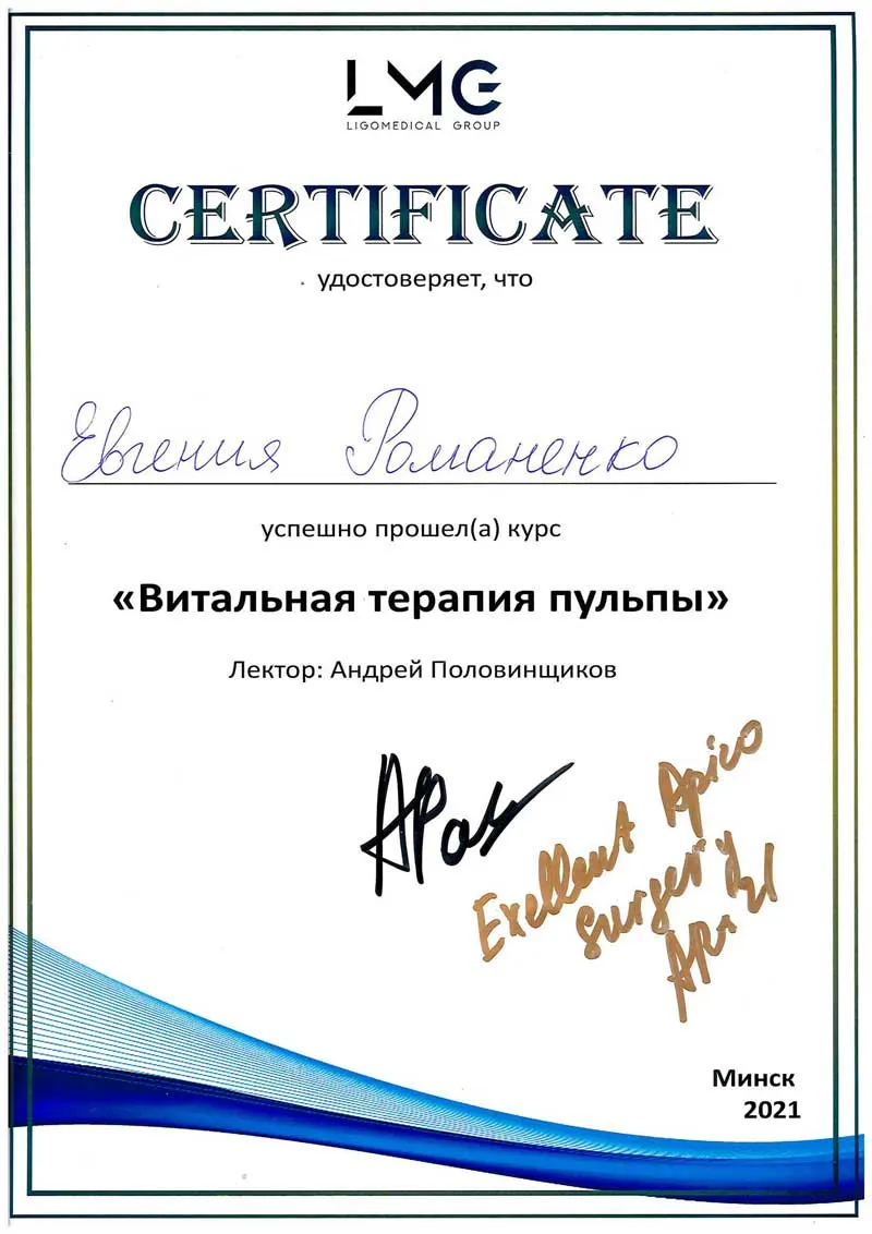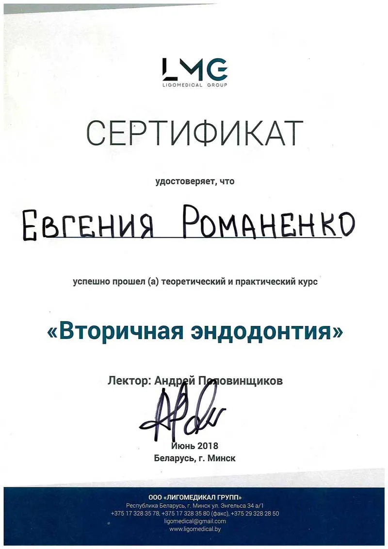 • 2008 г. — окончила БГМУ по специальности «стоматология».