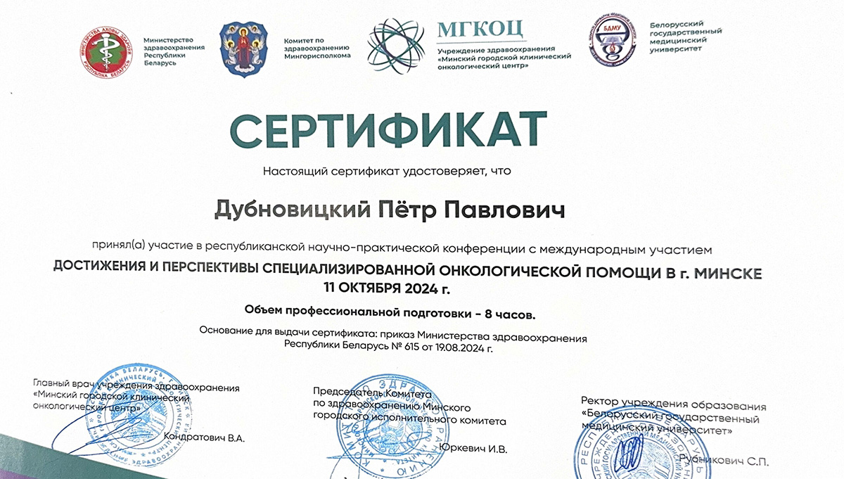 • 2024 г. — Республиканская научно-практическая конференция «Достижения и перспективы специализированной онкологической помощи в г. Минске».